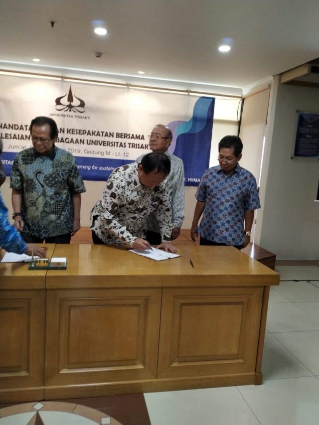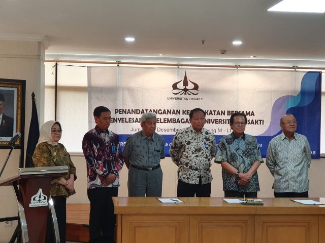 Universitas dan Yayasan Trisakti sepakat mengakhiri konflik yang sudah berlangsung selama 17 tahun. Kesepakatan ini tercapai usai kedua belah pihak menandatangani Memorandum of Understanding (MoU) Kesepakatan Bersama Penyelesaian Kelembagaan Universitas Trisakti.